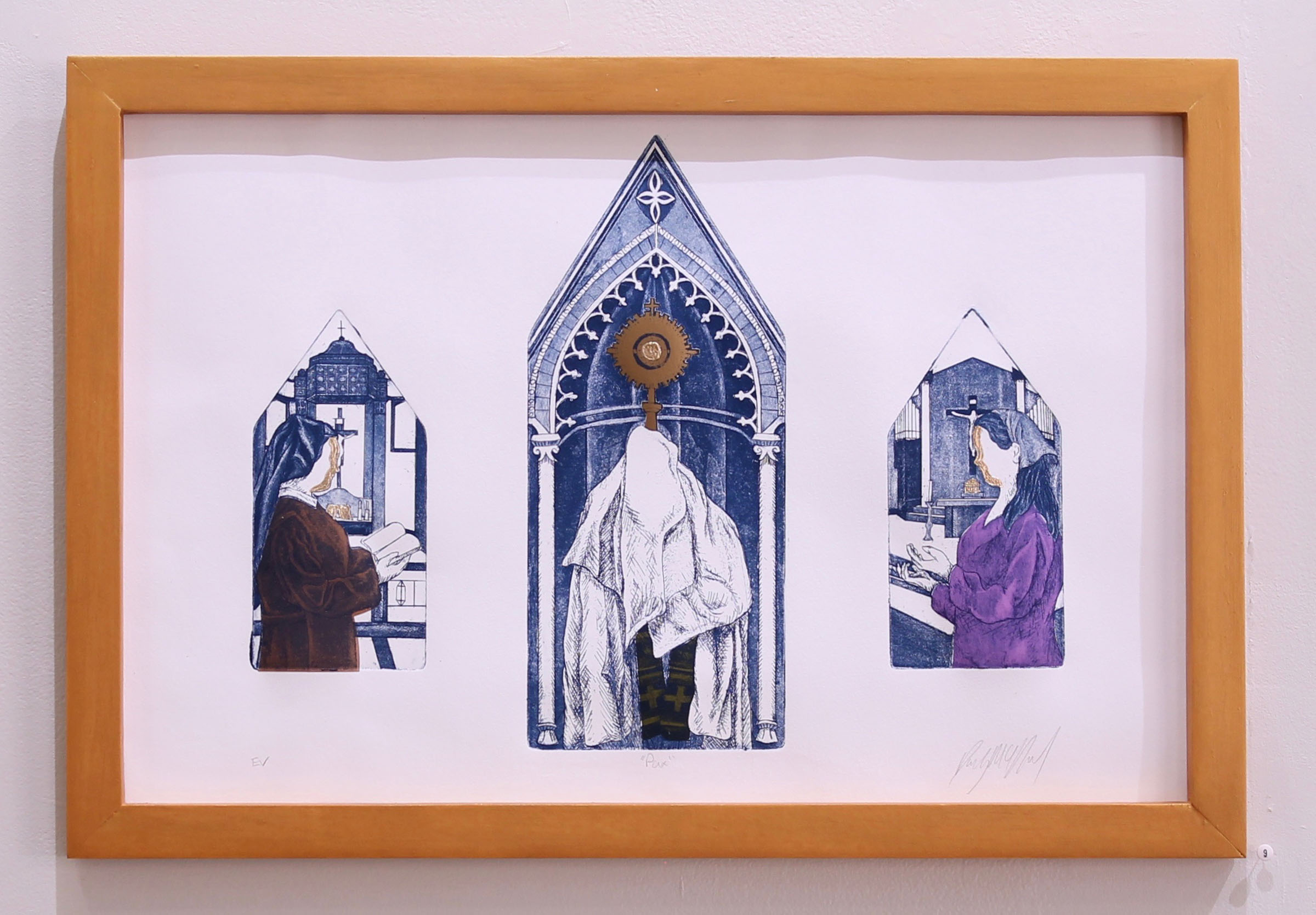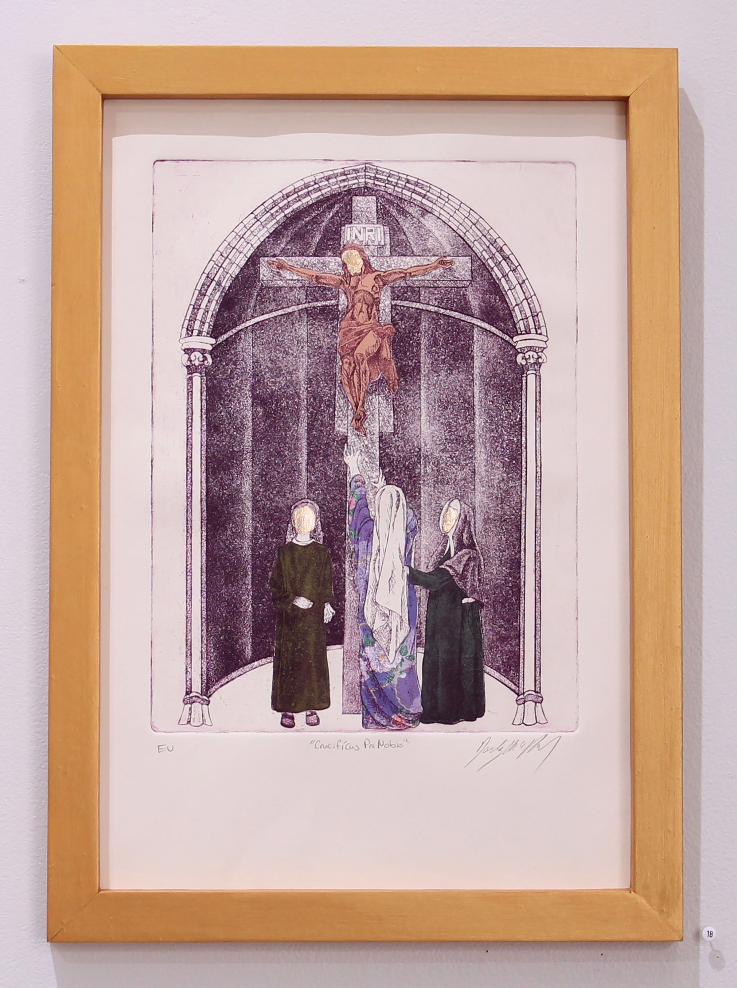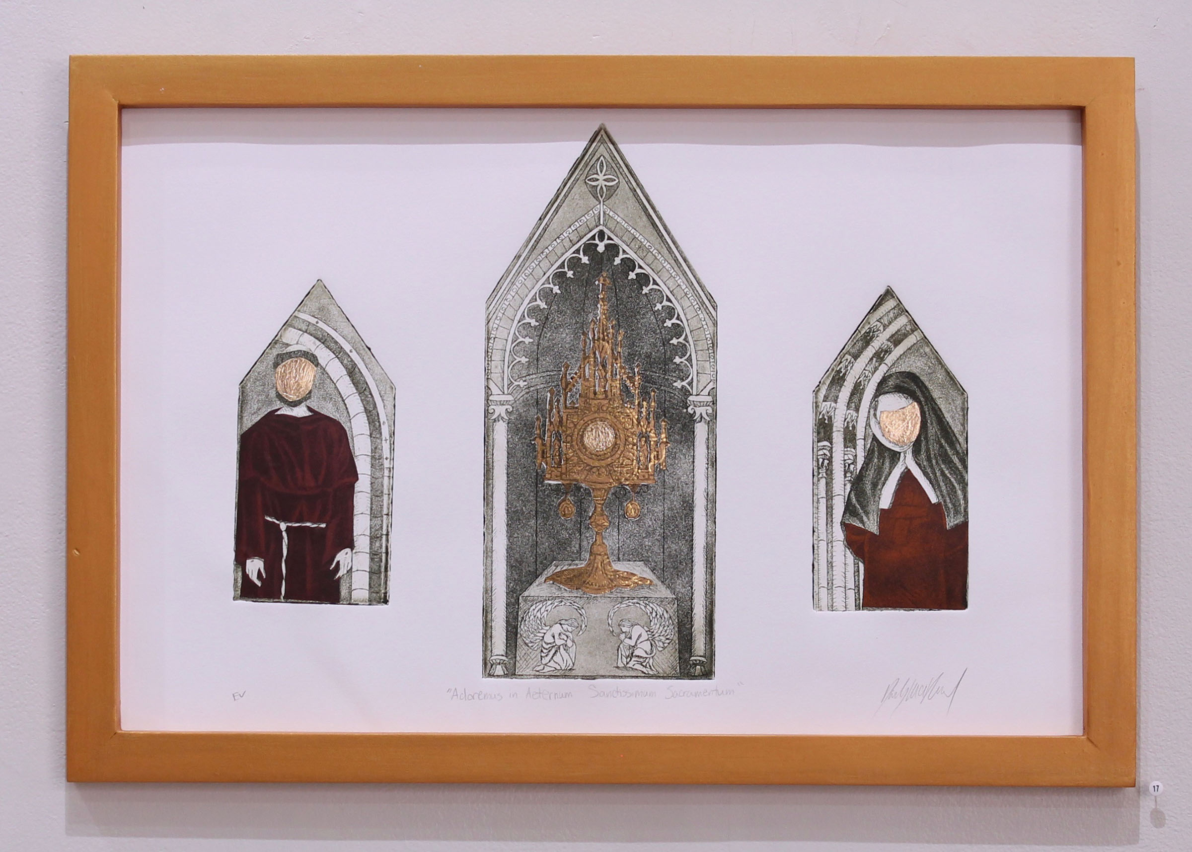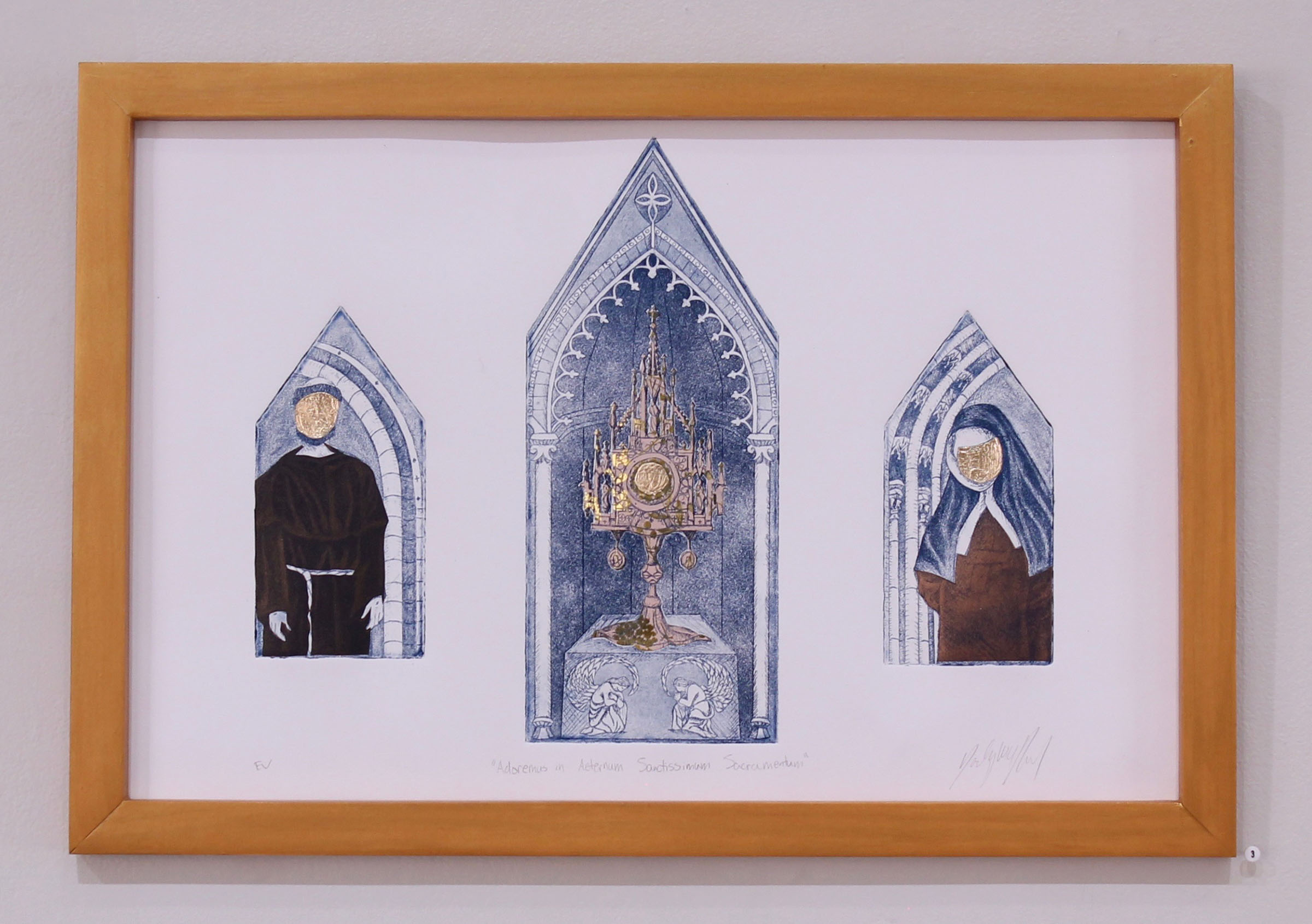 Based in Truth, beauty stirs within our hearts a deep longing which inspires an interior experience of transcendence. The very essence of beauty is the divine and because of this, beauty connects humanity to the divine. Yet our contemporary world is starved of rich devotional imagery which enables us to experience the Trinity, which is Love itself. I create so as to immerse our modern world within a reality of love, peace, and goodness. Inspired by Franciscan Spirituality, much of my work centers on the love of God present in Christ’s incarnation, his crucifixion, and his total giving of himself in the Eucharist, as well as our response to his love by our total self-giving. Therefore, my work is not only an invitation to enter into the mysteries of Christ, but also an invitation to question our own identities within the context of God’s love. By encountering God, we embrace a total self-emptying and self-giving nature so that Love itself may enter and consume our very being. In doing this, we become a glowing reflection of God’s love.