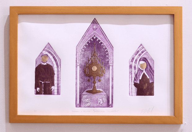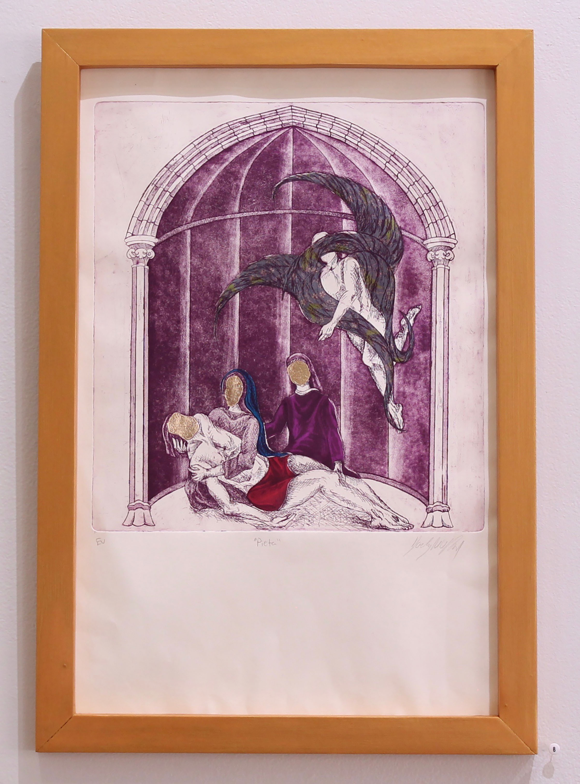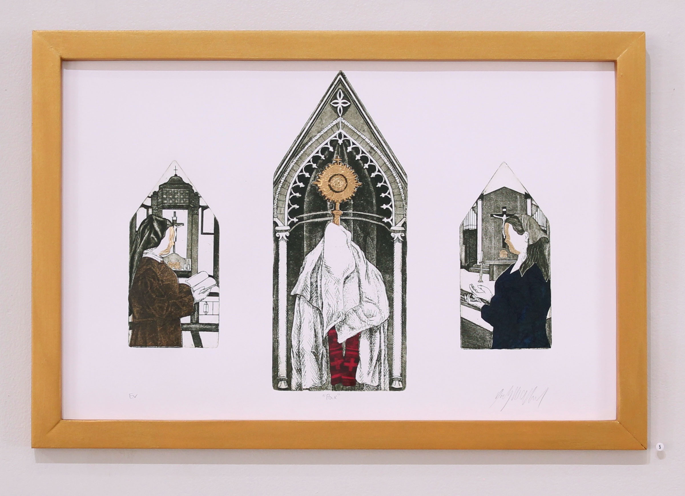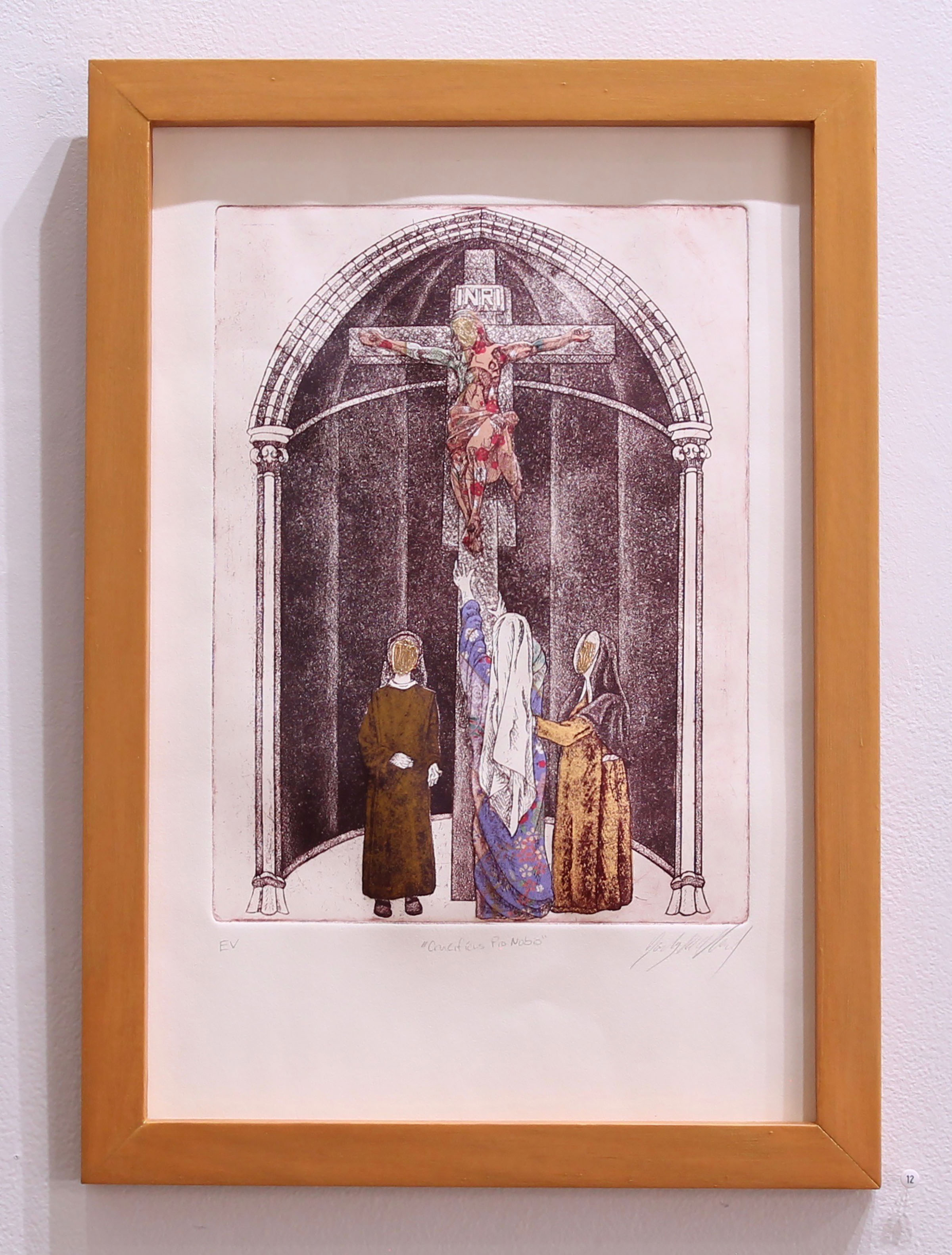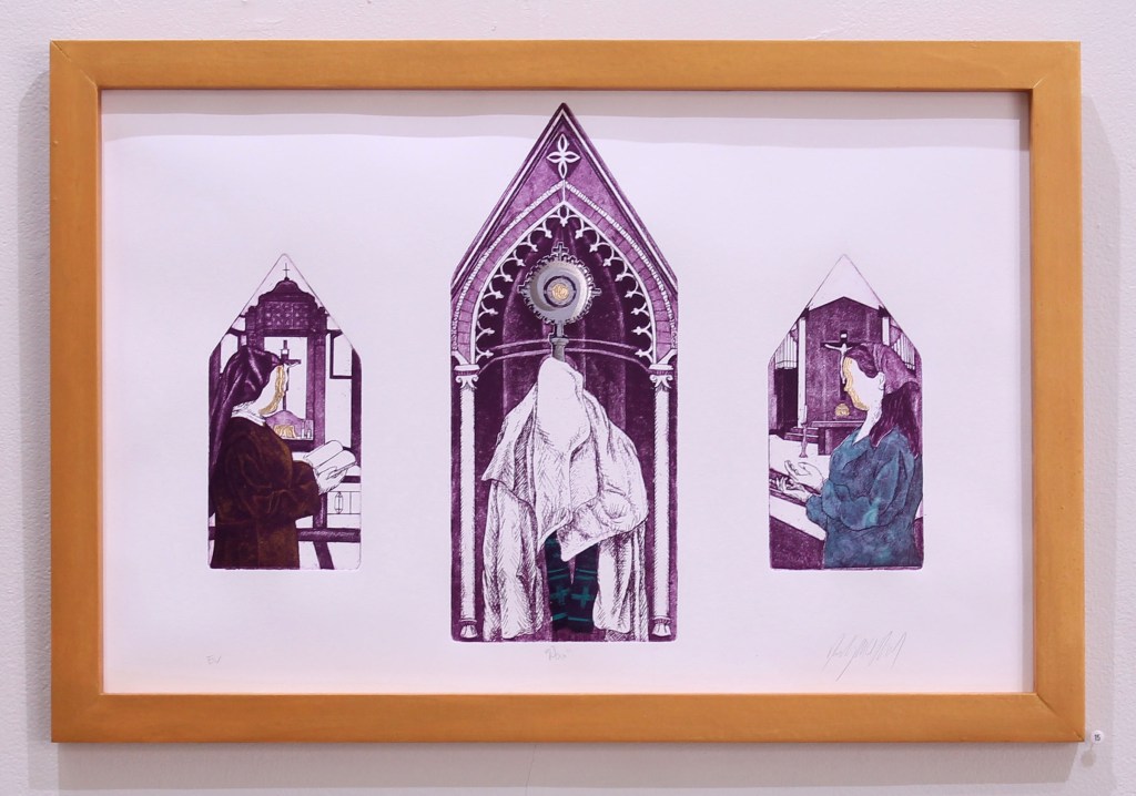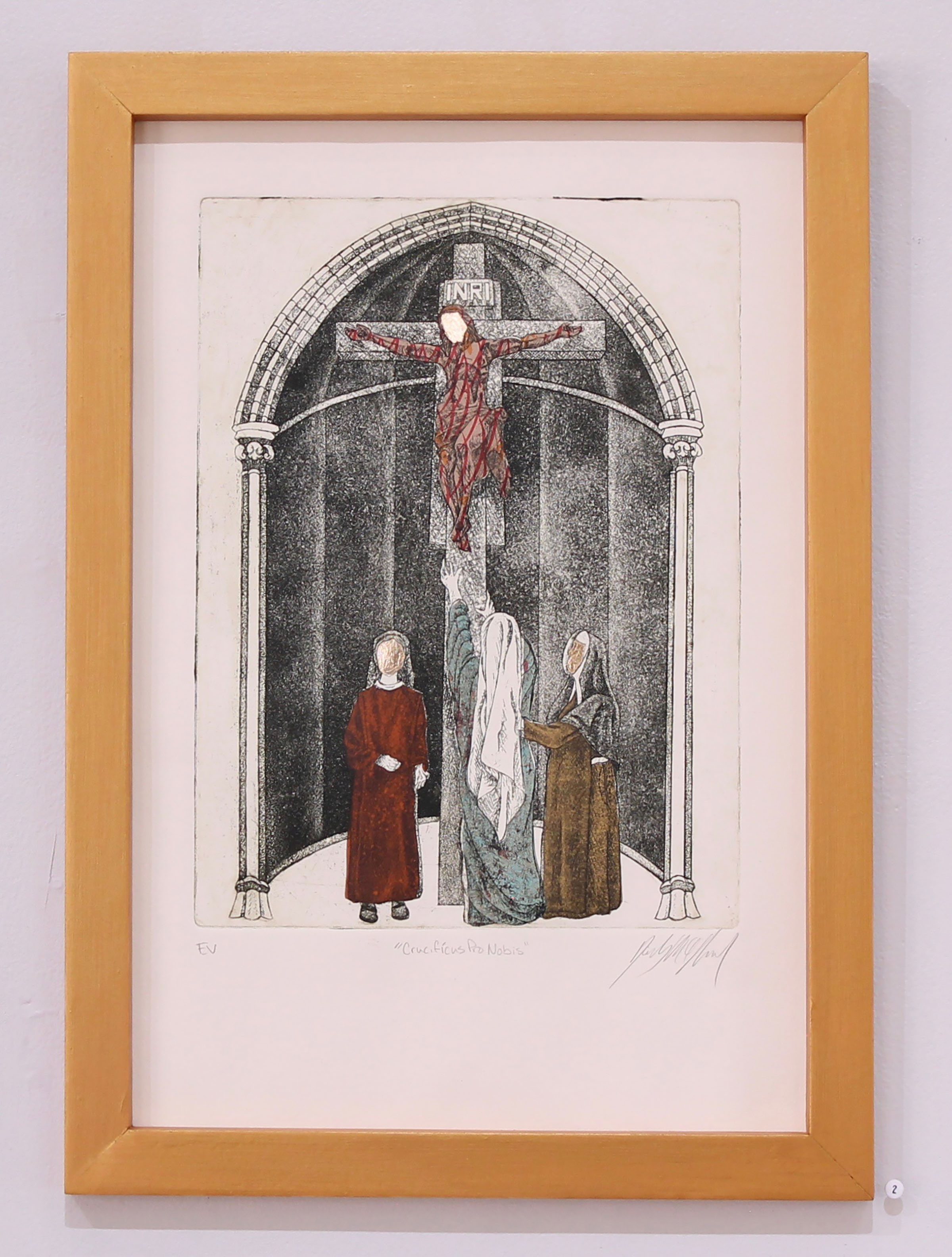 Based in Truth, beauty stirs within our hearts a deep longing which inspires an interior experience of transcendence. The very essence of beauty is the divine and because of this, beauty connects humanity to the divine. Yet our contemporary world is starved of rich devotional imagery which enables us to experience the Trinity, which is Love itself. I create so as to immerse our modern world within a reality of love, peace, and goodness. Inspired by Franciscan Spirituality, much of my work centers on the love of God present in Christ’s incarnation, his crucifixion, and his total giving of himself in the Eucharist, as well as our response to his love by our total self-giving. Therefore, my work is not only an invitation to enter into the mysteries of Christ, but also an invitation to question our own identities within the context of God’s love. By encountering God, we embrace a total self-emptying and self-giving nature so that Love itself may enter and consume our very being. In doing this, we become a glowing reflection of God’s love.